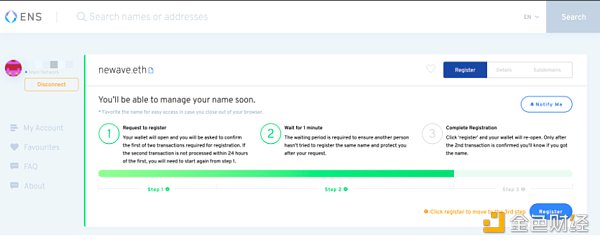 El nombre de dominio requiere al menos 3 caracteres. Xiaobian probó personalmente más de 5 caracteres y solo necesita 0.002 eth durante aproximadamente un año, lo que equivale a 5 dólares estadounidenses.