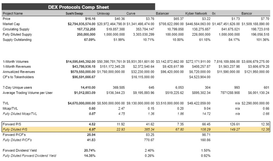 1. Creemos que SUSHI es ahora el token más infravalorado en activos digitales. Aquí hay un análisis de las valoraciones, los próximos catalizadores y por qué la reciente acción del precio a la baja es solo temporal.