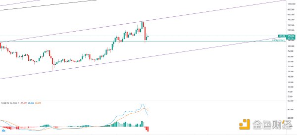 El carril medio del canal alcista a largo plazo encontró resistencia en el período anterior. Tras el ajuste del mercado más amplio, el mínimo cayó a 0,618 para apoyar el rebote. El mercado alcista actual no ha roto la línea de tendencia alcista. El anterior El mercado alcista también ha sufrido ajustes importantes similares. Después del ajuste, el mercado continúa abriéndose paso hacia arriba. Por lo tanto, el mercado alcista actual no ha terminado. No sea ciegamente bajista. Se espera que la tendencia reciente siga el rebote, con soporte. a $160 y presión a $220 y $256.