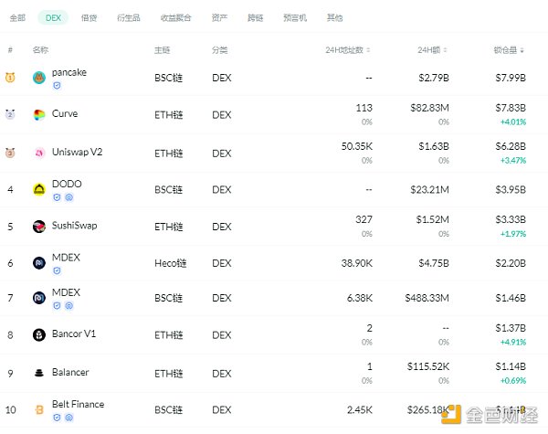 Fuente de datos de volumen de negociación en intercambios descentralizados en las últimas 24 horas: Debank