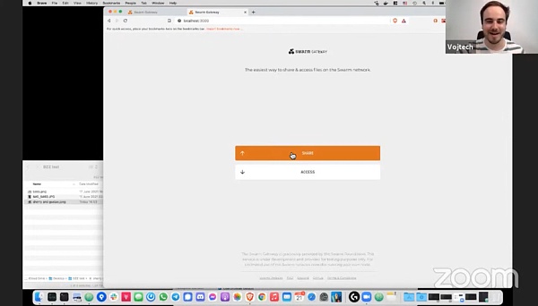 El nuevo Swarm Gateway (Swarm Gateway) permite a los usuarios compartir (Compartir) y acceder (Acceder) fácilmente a archivos en la red Swarm.