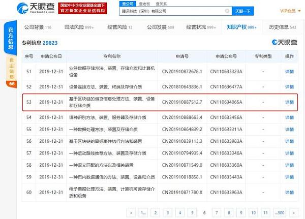 De hecho, en la actualidad, Tencent ha solicitado múltiples patentes relacionadas con blockchain. Los datos de Tianyancha muestran que solo el 20 de diciembre de 2019, Tencent Technology (Shenzhen) Co., Ltd. agregó más de 300 nuevas patentes, de las cuales más de 100 incluían blockchain.