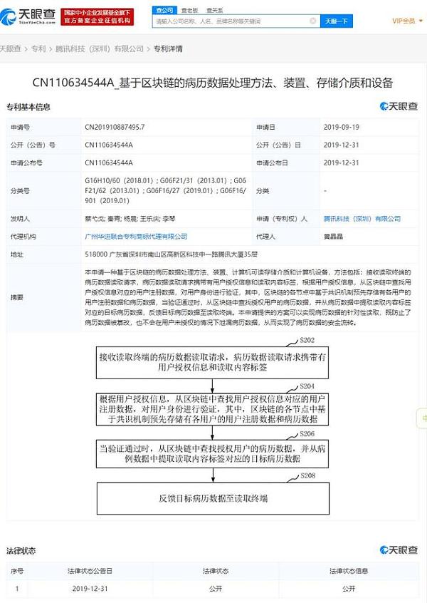 XRP/USD-2.16%Los datos de Tianyancha muestran que, recientemente, Tencent Technology (Shenzhen) Co., Ltd. agregó una serie de información de patentes relacionada con la cadena de bloques, muchas de las cuales están relacionadas con la aplicación de la cadena de bloques, como "Método de procesamiento de información de préstamos basado en la cadena de bloques , dispositivo, dispositivo y medio de almacenamiento" y "método, dispositivo, medio de almacenamiento y dispositivo de procesamiento de datos de registros médicos basados en blockchain".