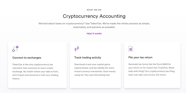 Tokentax es una plataforma líder de declaración de impuestos de criptomonedas que automatiza partes del proceso de declaración de impuestos de criptomonedas a través de compras, ventas e historiales de transacciones.