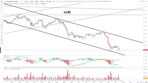 La tendencia de 4 horas todavía está en el canal de tendencia descendente. El precio ha caído desde que tocó 84 dólares estadounidenses en el período anterior. La tendencia general es relativamente débil. El volumen de rebote de ayer también fue promedio y la sostenibilidad no fue fuerte. Hoy volvió a caer. En 4 horas, hubo una divergencia entre el precio del volumen y el MACD. La tendencia alcanzará un nuevo mínimo más tarde, y el volumen puede cooperar. También se espera que marque el comienzo de un rebote técnico y soporte $ 45.
