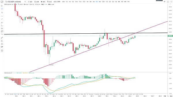 El volumen de energía actual también se está reduciendo y rebotando. El precio aún no ha regresado a la línea de tendencia ascendente anterior de 4 horas. El rebote es relativamente débil. La fuerte presión anterior sigue siendo la línea de tendencia semanal anterior. El nivel de supresión actual es 42 Dólares estadounidenses. Solo un gran avance en gran volumen. El espacio de rebote se ampliará. De acuerdo con la capacidad actual, es más difícil abrirse paso y mantenerse firme. En el futuro cercano, el mercado aún está vinculado. Se espera que continuará fluctuando cerca de la línea de 5 días y la línea de 10 días en el futuro cercano No aparecerá hasta que la línea de 20 días esté cerca.