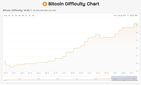 Coeficiente de dificultad más reciente de Bitcoin, fuente: CoinWarz