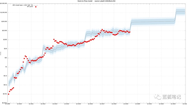 Esto implica un precio de Bitcoin (19 millones de BTC entre 2020-2024) de $2.880.000.000. La predicción del precio de Bitcoin es significativamente más alta que los $ 5,500 mil millones en el estudio original. Tenga en cuenta que el modelo S2FX es solo un primer paso, no ha sido copiado ni revisado por otros. (Nota de Blue Fox: Todavía está en la etapa de propuesta de modelo y necesita más revisión por pares)
