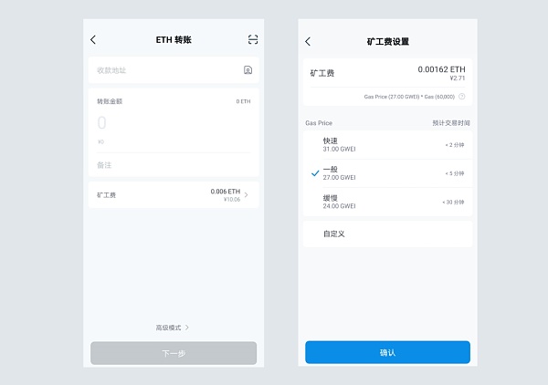 Por lo tanto, si usa imToken para transferir fondos, por un lado, la función de "cambio de tres velocidades" le brindará la opción de tarifa de gas más adecuada; por otro lado, imToken también brindará facilidad cuando la tarifa de gas que establezca es "irrazonable".