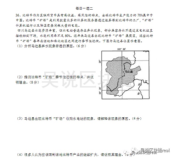 XRP/USD-2.16%Se acerca el examen anual de ingreso a la universidad china. Wu dijo que la consulta de blockchain encontró que muchos exámenes de geografía simulados para el examen de ingreso a la universidad tenían el título "Mina de Bitcoin de Sichuan", incluido el examen original de simulación de sprint para el Examen Nacional de Ingreso a la Universidad 2020 , Zhengzhou, provincia de Henan Examen de ingreso a la escuela de idiomas extranjeros Simulación de Quanzhen (3) Preguntas del examen de geografía integral de artes liberales, Examen de ingreso a la universidad de cinco años Simulación de tres años Examen de ingreso a la universidad Tema de geografía quince, etc.