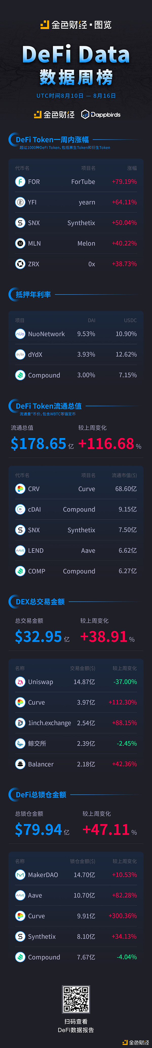 XRP/USD-2.16%Según los datos especiales de DappBirds DeFi, el valor de circulación total de DeFi Token es de 17.865 mil millones de dólares estadounidenses, un aumento del 116,68 % con respecto a la semana pasada; el volumen total de transacciones de DEX supera los 3 mil millones de dólares estadounidenses, un aumento del 38,91 % con respecto a la semana pasada; el monto total actual de bloqueo de DeFi es de casi 8 mil millones de dólares. Para más datos, basta con mirar esta imagen.