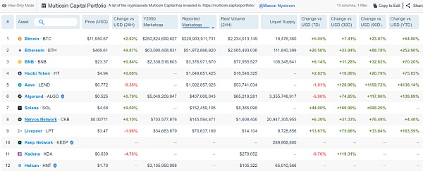 Hicimos un seguimiento de muchas de las principales empresas de capital de riesgo y fondos de cobertura en el espacio criptográfico, documentando sus carteras de liquidez. Por supuesto, esto puede perder proyectos de inversión de capital, así como inversiones en redes que aún no se han lanzado.
