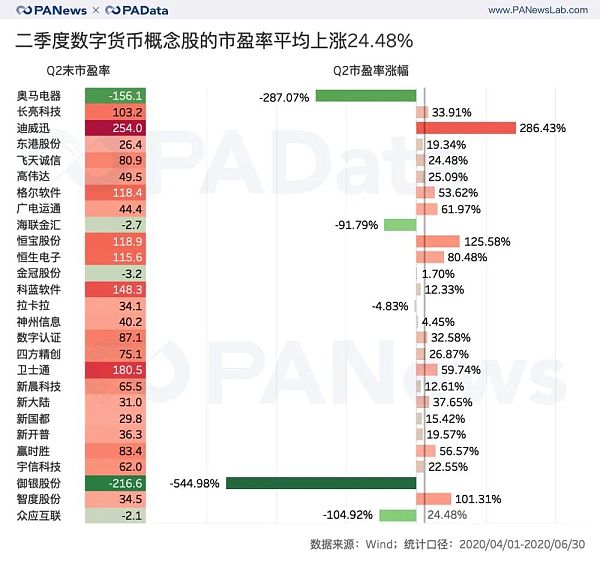 Desde la perspectiva de la relación precio-beneficio (PE), la valoración media de las acciones del concepto de moneda digital el 30 de junio fue de aproximadamente 53,27 veces, y el aumento medio de la valoración en el segundo trimestre fue de aproximadamente el 24,48 %, lo que se situó en una posición relativamente alta en general. . Entre ellos, Diweixun tiene un mayor aumento, alcanzando el 286,43 %, y su PE al 30 de junio es de unas 254 veces, lo que se encuentra en un nivel alto. Similares son las acciones de Hengbao y Hang Seng Electronics, que son acciones conceptuales con valoraciones más altas y tasas de crecimiento más altas. También destacan las acciones de Homa Electric y Yuyin, cuyas valoraciones cayeron más de un 200% en el segundo trimestre.