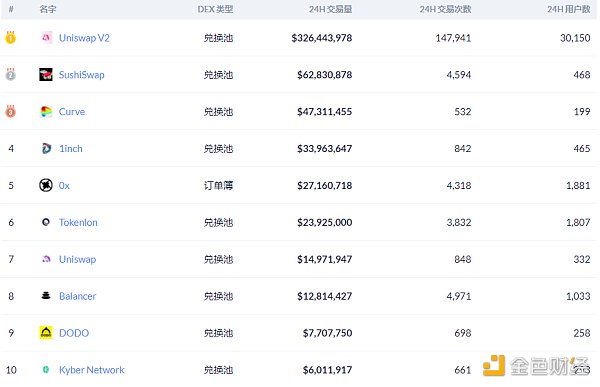 Fuente de datos de los diez principales DEX por volumen de negociación: Debank