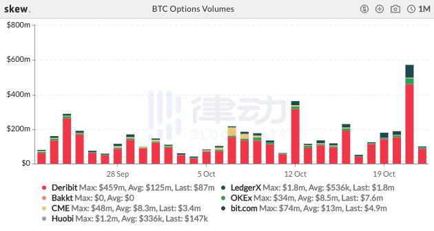 Las noticias de Rhythm BlockBeats, sesgan los datos actualizados de negociación de futuros y opciones de BTC, ETH el 21 de octubre.
