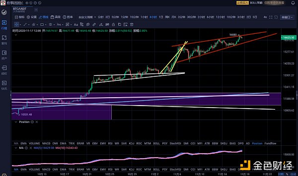 Justo anoche, el Promedio Industrial Dow Jones subió 470 puntos, acercándose a la marca entera de 30,000 puntos, estableciendo un récord. Bitcoin y las acciones de EE. UU. resonaron sincrónicamente, rompiendo el máximo de $16 477 recién formado el 13 de este mes, y se estableció un nuevo máximo de $16 880. Después de que apareció la línea positiva ayer, aparecieron nuevos cambios en el mercado. En primer lugar, en la estructura bidimensional, Bitcoin ha convergido y se ha deformado desde la gran apertura horizontal anterior a la actual estructura convergente de pendiente ascendente estrecha. El segundo punto es que después de que terminó el viaje diario de Bitcoin hacia el oeste, la línea positiva de ayer marcó la posibilidad de una segunda ronda de viaje diario hacia el oeste. El tercer punto es que Bitcoin ha entrado en el rango operativo de la línea Mad Tang Monk Yang en el nivel de tiempo semanal.