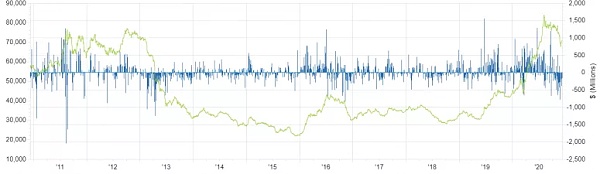 Las salidas recientes de oro siguen a un aumento en los precios del oro en meses anteriores: GLD e IAU han visto entradas de más de $ 25 mil millones desde el comienzo de 2020, el año más fuerte para las entradas en la última década. Incluso con salidas de capital, los fondos de oro se han comportado muy bien este año.