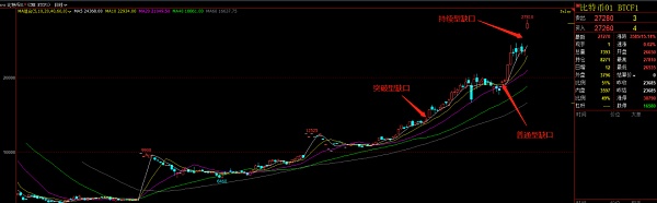 Desde octubre, los futuros de Bitcoin de CME han formado tres brechas. Dado que el círculo de divisas es una transacción de 7 x 24, y las finanzas tradicionales tienen que descansar los fines de semana o días festivos, cuando CME está cerrado, una vez que Bitcoin sube, se formará una brecha de CME A en el apertura del mercado. En el mercado tradicional, las brechas generalmente se dividen en brechas ordinarias, brechas de avance, brechas continuas y brechas de consumo. La brecha formada por el último salto es más como una brecha continua. Si se forma una brecha en el camino hacia arriba , habrá una alta probabilidad de que sea una brecha de consumo, por lo que debemos estar atentos a los riesgos.