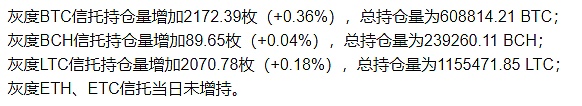 Grayscale está de vuelta, esta vez dos días antes que antes. Parece que no puede esperar para comerse el bitcoin después de la corrección. Su aumento de posiciones ha traído una gran confianza al mercado. Al mismo tiempo, el fideicomiso XRP también se disolvió, lo que hizo que la debilidad de Ripple continuara.Aunque la Agencia de Servicios Financieros de Japón también indicó que Ripple no es un valor sino una criptomoneda después del Tesoro británico, esto sigue siendo inútil porque el jugador dominante en el cripto mercado Aún para los estadounidenses. El aumento y la disminución de la posición de Grayscale ayer son los siguientes: