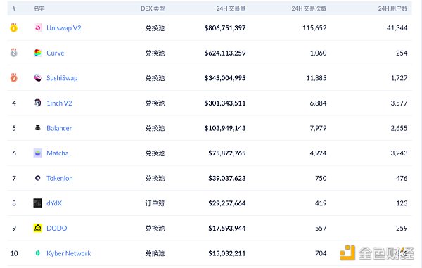 Fuente de datos de los diez principales DEX por volumen de negociación: Debank