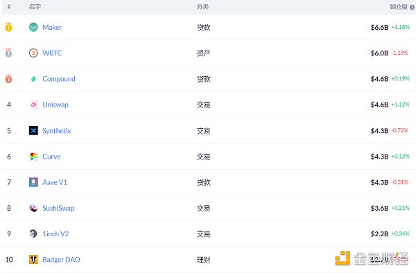 Datos DeFi 1. El valor de mercado total de DeFi: 80,561 mil millones de dólares estadounidenses El auge y la caída de las diez principales monedas por capitalización de mercado, Jinse Finance Chart.