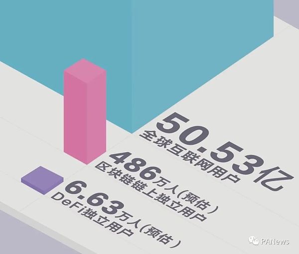 Suponiendo que se convierta la proporción de direcciones activas de Bitcoin a la cantidad total de direcciones efectivas, se estima que la cantidad de direcciones DeFi efectivas es de aproximadamente 331 500. También suponiendo que 5 direcciones corresponden a 1 usuario independiente, entonces la cantidad de usuarios DeFi independientes es se estima en unos 66.300.